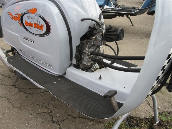 Hallo Josua, ich weiß nicht was für einen Motor der verbaut hat, hab den Fahrer im Gedränge nicht gefunden- aber den Aufkleber auf der Seitenbacke: ScooterWorld, der Roller soll angeblich in Internet sein, so auch der Aufbau- geh mal auf :ScooterWorld,Hamburg, vielleicht findest du da was- Gruß Stefan greyrs50 - wenn mal in HH die Sonne scheint-sofort losrollern-selbst wenn es nachts ist!!