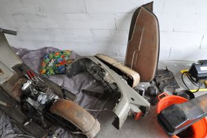so, wie versprochen hier die bilder. habe heute wieder einiges hinbekommen, aber es ist doch weit mehr arbeit als gedacht! ja, ihr hattet alle recht! leider habe ich noch keinen zündfunken hinbekommen. bremsblöcke vorne waren gar nicht mehr drin jetzt mache ich doch die ganze verkleidung ab. wie bekomme ich vorne den radkasten ab, die beiden schrauben oben drauf? auf welchen preis kann ich mich einstellen, wenn ich die sachen doch lackieren lassen will? muss ich die vorher alle schleifen? lohnt sich das überhaupt? nachher muss ich erstmal hier ne großbestellung aufgeben: -alle bowdenzüge (weiß jemand, wo ich den für den joke bekomme) -lampenreflektor vorne -lager für die hinteren federbeine usw.... leider hat der roller keine schnarre vorne, sondern nur die klingel hinten sollten doch zwei leuchten sein, oder?! da geht nämlich nur ein 2-adriges kabel hin. man man, habe nicht gedacht, dass der roller so fertig ist. aber wenn die verkleidung komplett ab ist, lassen sich die bowdenzüge ja auch gut wechseln. sollte ich gleich die verkabelung neu machen? so wie sie auf dem stromkreisblatt drauf ist?