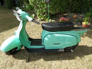 Zündapp R50 Roller Oldtimer sehr gepflegt! Zündapp R50 3-Gang Handschaltung 49,9ccm 2,9 PS Habe einen sehr schönen Zündapp R50 Roller zuverkaufen. Der Roller ist Bj. 1966 also ein richtiger Oldtimer. Er springt sofort an,läuft wie ein schweizer Uhrwerk. Sonderausstattung: Chrom-Lampenbügel, original Spiegel, Gepäckhaken. Folgende Teile sind neu: Bremsbeläge vorne, die Trommeln wurden abgedreht. Neues Getriebe-Öl,Neue Zündkerze, Neue Griffe von Magura.Vergaser- Überholungskit (alle Kleinteile innerhalb des Vergasers neu,Nadel,Schimmer,Schrauben, Federn etc )Diverse Dichtungen neu.Ein Teil der Schrauben wurde durch neue Edelstahl- Schrauben ersetzt. Alles weitere erfahren Sie per Mail, falls Interesse. Farbe: super! Grün-Türkis Papiere natürlich vorhanden! Schlüssel ebenfalls! Bedienungsanleitung und Ersatzteil-Katalog vorhanden. Bilder werden bei Interesse gerne per Mail geschickt. Außerdem hat der Roller noch rundum neue Kantenschutzprofile bekommen. Der Roller ist fahrbereit und bis Ende Februar 2013 versichert. Der Preis 1000€ ist VB! Nehme auch gerne ernst gemeinte Preisvorschläge entgegen. |