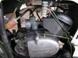 Der Auspuff ist noch mein alter aber der von Ingo liegt in der Garage bereit. Wie ihr vlt. sehen könnt ist der Ansauggeräuschdampfer draußen und mein Chokezug fehlt irgendwie. Zudem ist der Benzinhahn nicht angeschlossen, das heißt ich kann nicht die Sprit zufuhr stoppen. Die Elektrik ist auch noch nicht richtig angeschlossen, aber dich denke das kriege ich mit der Beschreibung aus dem Forum hin. Habe mir aber jetzt schon einige Teile von meinem Zündapp Kollegen besorgt. Alles in allem ist der Roller noch ein Restaurierungsobjekt, an welchem noch ein bisschen gemacht werden muss.