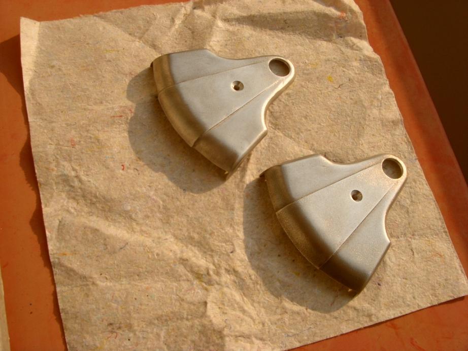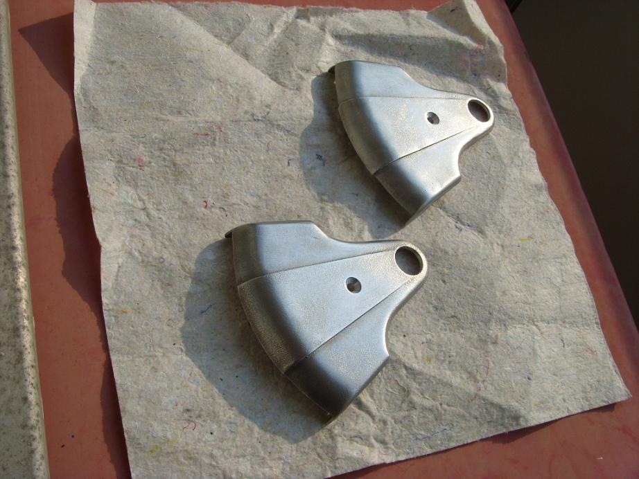 Zierkappen für die Gabel, hatte schon mal angefangen zu polieren, ist mir mit meinen bescheidenen Mitteln doch zu langweilig, sind neu und waren noch nie verbaut, sehr selten, Preis 44,- plus 5,- versicherter Versand