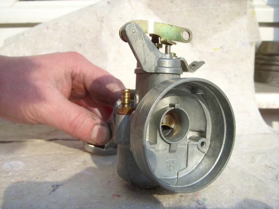 1/16/83er Vergaser, späte Version, es fehlt das kleine Ding, wo man den Chokezug am Hebelende einhängt, Haupt- und Nadeldüse auch, müßte noch was gebrauchtes haben, kommt dann noch rein,Klemmbereich ist nicht geweitet oder zusammengezogen, Schieber klemmt nicht im befestigten Zustand, gebrauchter aber sehr schöner Zustand, wenig gelaufen, dazu ein Ansaugstutzen Lochabstand 45mm, habe diesen Dank einer selbstgefertigten Drehbankspannvorrichtung abgedreht, eine innen passend gedrehte Messingbuchse aufgeschrumpft und anschließend für diesen Vergaser passend abgedreht - Vergaser sitzt auch ohne Anziehen der Klemmschraube schön satt auf dem ASS, wer seinem Roller diese Kombination gönnt, kann sich zukünftiges Gebastel mit Coladosenblechstreifen sparen, Preis 80,- plus 5,- versichertem Versand, wer meiner Handwerkskunst mit dem überarbeiteten ASS nicht traut, bekommt bekommt stattdessen für 15,- mehr den neuen ASS aus dem Angebot weiter unten. Bei Interesse PN.