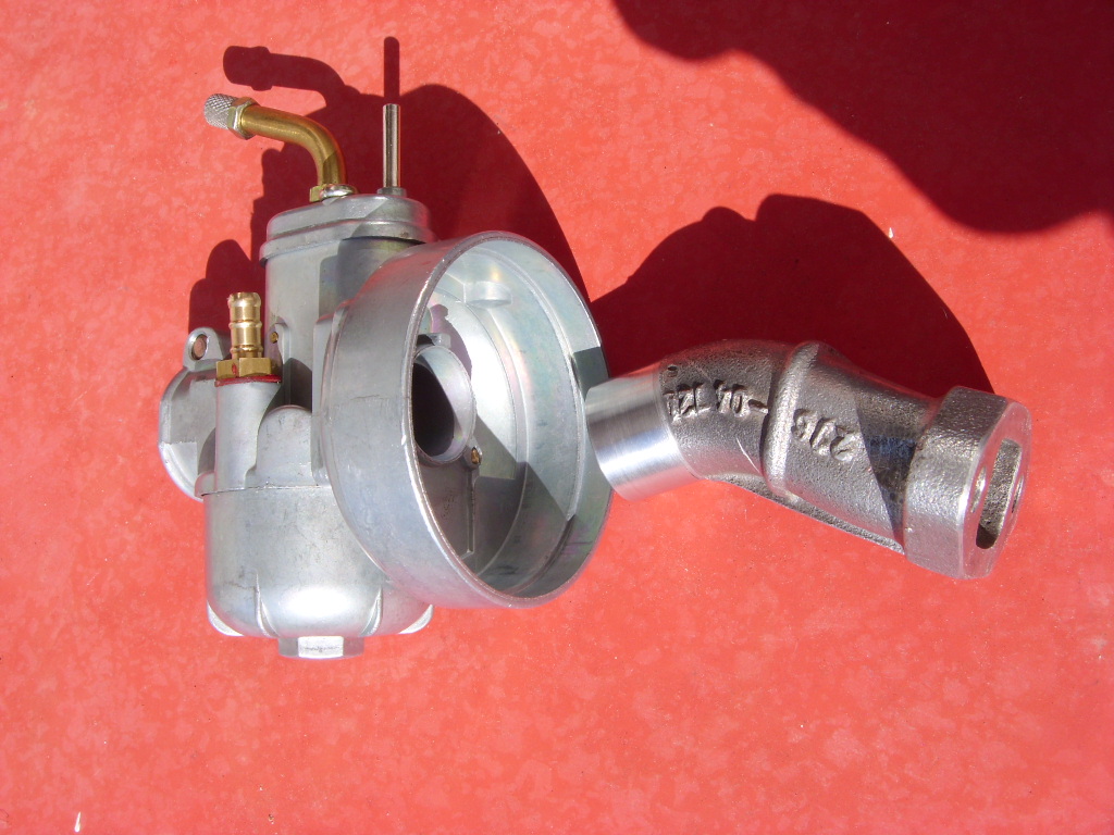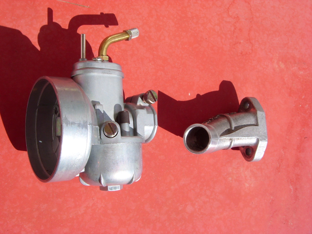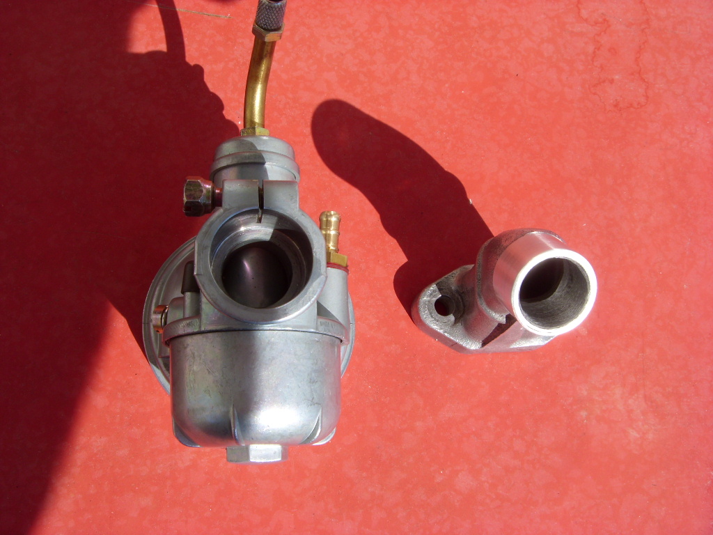 17er Reprovergaser neu (Kaltstartmechanik/Deckel und Innereien müssen noch auf RS Spezifikation umgerüstet werden, kann ich mit guten Gebrauchtteilen machen), dazu passend instandgesetzten RS-Ansaugstutzen (verschlissener Stutzen dank spezieller Spannvorrichtung auf der Drehbank abgedreht, Alu-Buchse aufgeschrumpft und wieder auf Maß abgedreht), beides sitzt stramm bereits auch ohne Festschrauben aufeinander, der ASS ist schon mal innen etwas erweitert worden, ideal für Verwendung bei 70ccm.