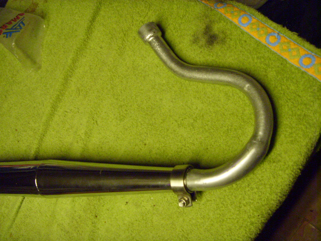 Neuer noch nie verbauter Jamarcol mit spätem gebrauchten Krümmer, bei dem der untere plattgedrückte Bogen durch ein gebogenens größeres Rohr ersetzt wurde, Krümmer wurde mit einem beschissenen hitzefesten aber etwas abfärbenden Alulack gesprüht, kann man ändern muß man aber nicht, kommt man ja eh nicht dran und sieht man auch nicht. Ist was für unfrisierte R 50, um nicht mit 40km/h durch die Gegend zu schleichen. Bei Interesse PN.