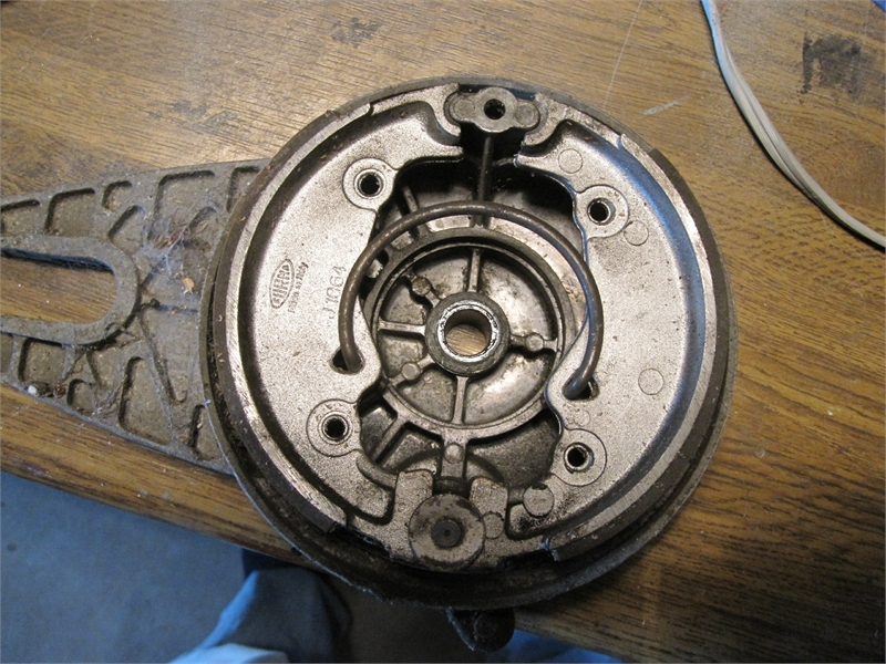 So, da bin ich nochmal,Arne und Rainer: ich meine, wenn man eine alte Bremstrommel hat, die mit der einzelnen Drehfeder ( Bild 1 ,jetzt reingestellt) die die Backen in Grundstellung hält, dann braucht man auch die kleine Drehfeder außen, wie Zündapp es sich gedacht hat...