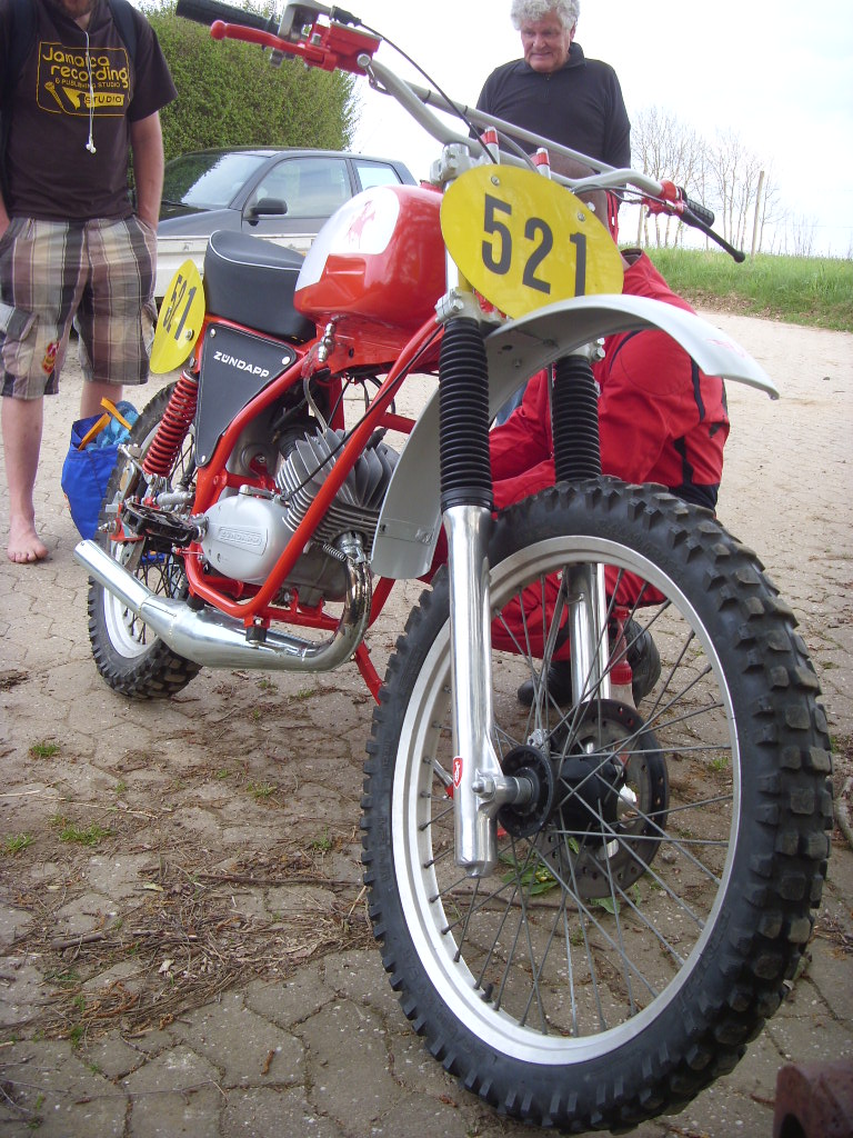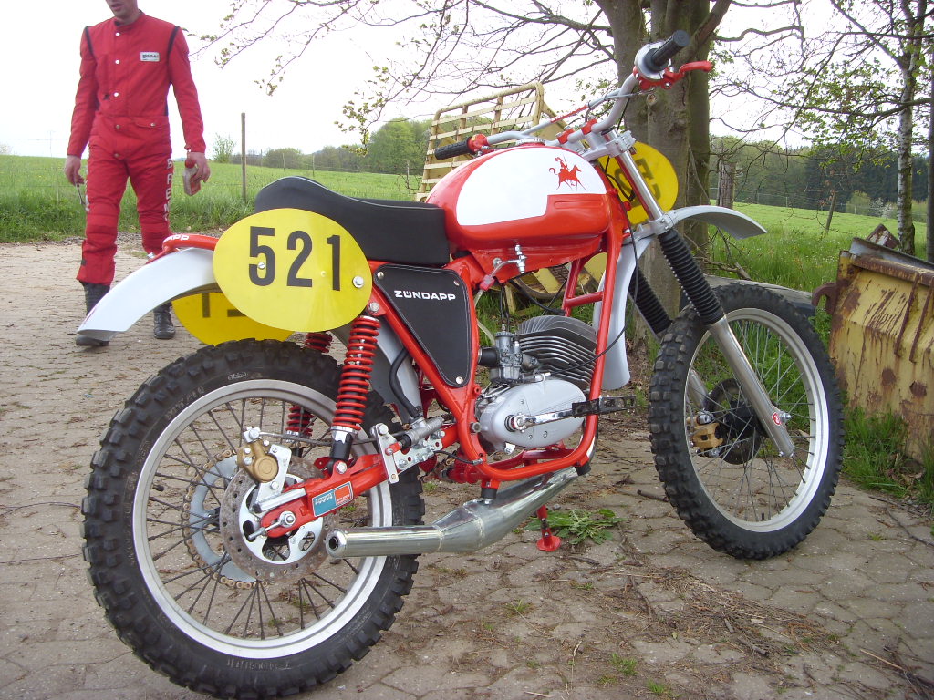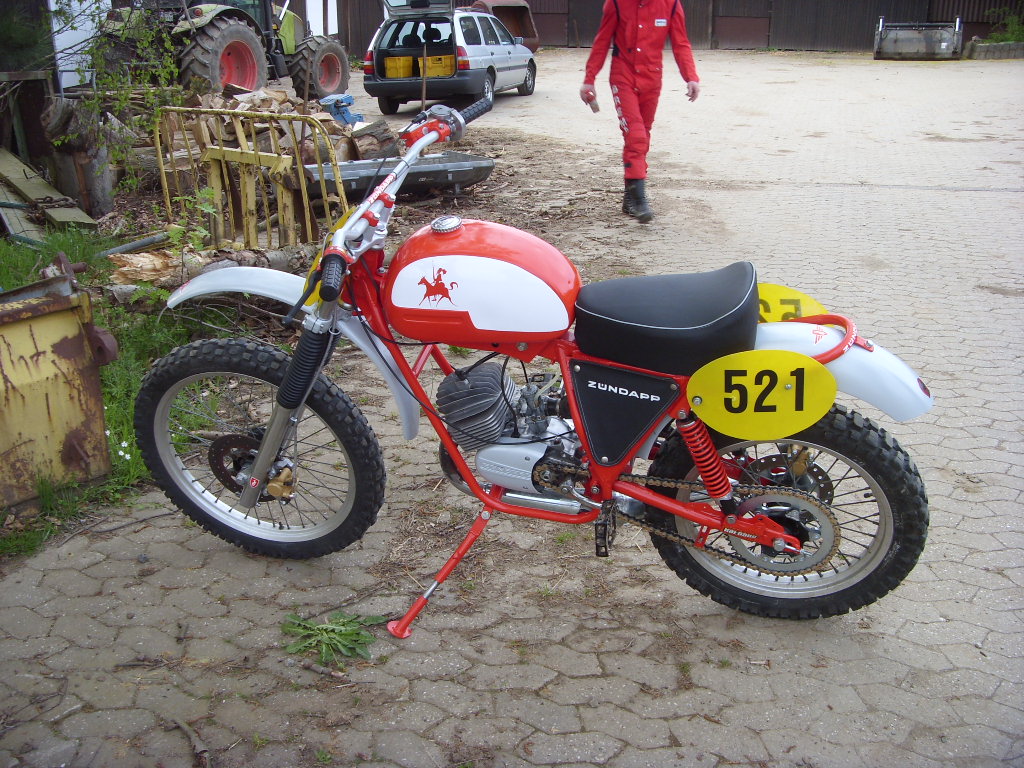 Ich war heute bei einer verschworenen Gemeinschaft von Zündappfans in Rheinbach/Meckenheim, die mit eigentlich viel zuviel Aufwand und Liebe zum Detail aus größtenteils markenfremden Schrottteilen ein Crossmofa im Stil der Zündapp MC-Maschinen aufgebaut haben (bei Zündappteilen kamen auch nur eigentlich defekte oder Reproteile zur Verwendung, keine Teile, die an originalen Zundapps noch hätten verwendet werden können). Ich fuhr dort hin, um den Vergaser abzustimmen, da die MC25 sehr schlecht ansprang und auch das Gas schlecht annahm. Hier kann man die MC25 vor der Abstimmung sehen: http://de-de.facebook.com/photo.php?v=450924968328833&set=vb.423620827725914&type=2&theater Nach erfolgreicher Abstimmung durch mich riss den Jungs nach einigen Proberunden der Hahnstutzen am Tank ab, und übermorgen, am Mittwoch, wollten sie zum ersten Rennen starten. Also, wer hat im Raum Rhein/Sieg einen Tank einer 515 abzugeben, Zustand wirklich schXXXegal, gerne schlecht mit Beulen/Rost innen/außen, zum Preis von einem sehr guten Exemplar? Bedingung ist, das der Tank am morgigen Dienstag abgeholt und sofort bar bezahlt werden kann. Kontakt über PN an mich oder besser direkt beim Team unter 02225/8880789