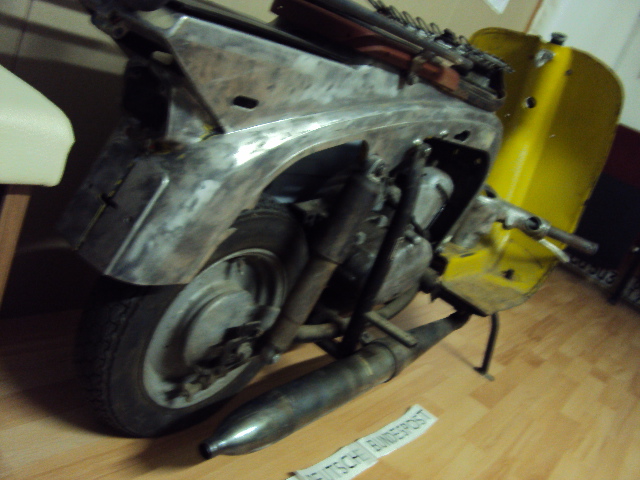jip, Bj 1970 und den frühen Topf. Allerdings hat er Rahmennr. 702xxx und der "Knubbel" an der Lampenmaske ist auch nicht dran. Müsste also einer der älteren sein. Die neuern, Rahmen 703xxx haben dann den neuen Topf und den Knubbel. Die Gusshälften haben noch schön das Gewinde für den Gepäckträger, die Schaltwippe/Verstärkung ist auch noch gut, verstärktes Lenkkopflager, und vielleicht kann ich bei der Gabel und dem Soziusdeckel die gelbe Farbe wieder retten, beim Rest leider schon abgeschliffen. Wegen dem Roller hab ich dieses Jahr die Veterama sausen gelassen, hab ihn gestern aus dem hohen Norden geholt. |