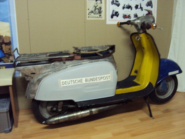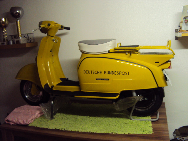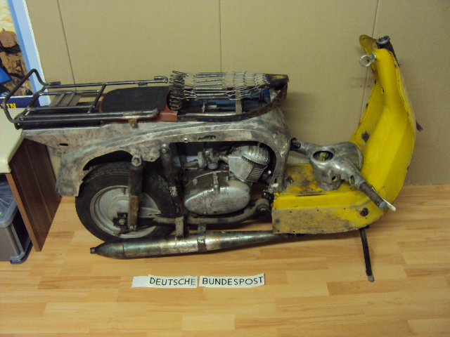 EIn weiterer Post RS ist aufgetaucht, Typ 561-06, Liste B, BJ1970. Leider ohne Original 1-Sitzer und ohne Gepäckträger (Sitzbank dann eben gekürzt und Gepäckträger Nachbau dran), dafür aber mit Original Post RS Motor und der Soziusabdeckplatte. Alex