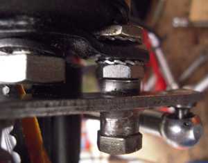 Habe jetzt mal eine simple M8 mit Kupferfolie auf den Durchmesser des Hebellagers gebracht. Sieht eigentlich ganz gut aus. Dann passende Mutter in der Höhe reduziert, so dass sie hinter die Aufnahme am Rahmen passt, an der wohl ursprünglich der Bolzen angeschweißt war. Ich habe mal ein Bild gemacht um verständlich zu machen, was für eine Lösung ich jetzt ohne Schweissgerät gefunden habe. Mal sehen, ob es sich im Alltag bewährt.