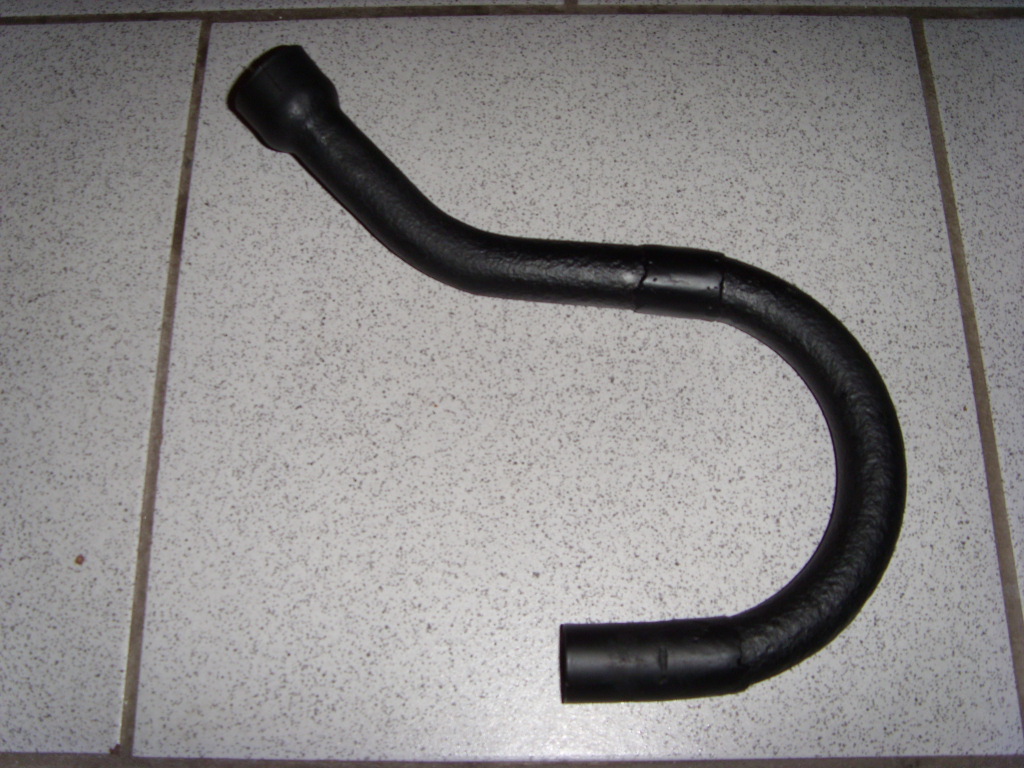 So, da Foto, ist ein gekürzter Krümmer mit 24er Durchmesser(späte Version), unten mit 26er Röhrchen, der Krümmer hat oben eine Verstärkung aufgeschweißt bekommen, wo immer der Bremsumlenkhebel ein Loch reinschlägt, und unten ein Stück eines 26er Krümmers, um weiterhin einen Originalauspuff mit innen 26er Anschluß zu verwenden. Habe den mit der Drahtbürste entrostet und mit Hitze- und Spritfestem Metaflux schwatzmacht lackiert, für ein so verstecktes Teil reichts, Hauptsache gammelt nicht weiter, ist funktionsfähig und dicht, nur interessant und nützlich für Originalmotoren 2,6 /2,9 PS, Interesse? Ansonsten hätte ich noch einen anderen gekürzten 24er Krümmer mit angeschweißtem 30er Röhrchen, dazu passend einen neuen noch nie verbauten Jamarcol mit 30er Anschluß, Fotos erst in einigen Tagen möglich. MfG Der 561er