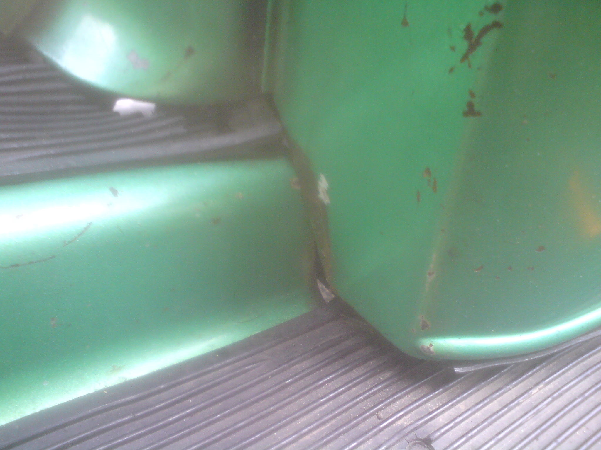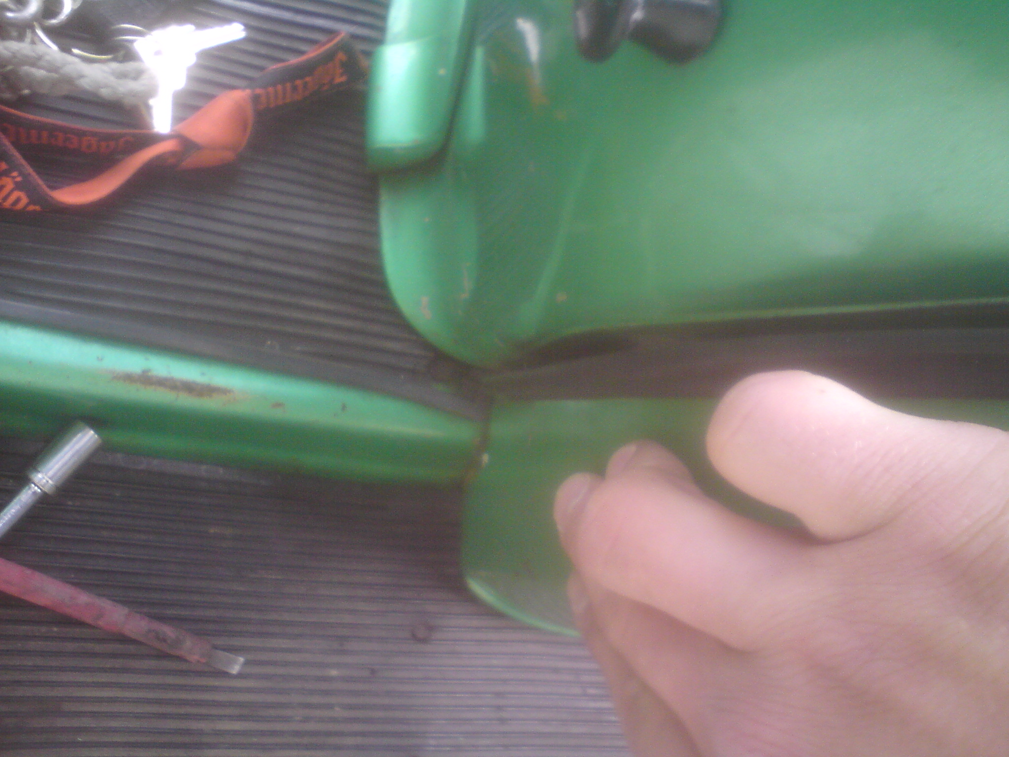 So, ich habe mich heute mal ne halbe stunde meinem Roller gewidmet. Das erste was aufgefallen ist, 1. ist das die Seitenbacken nicht richtig montiert werden können weil sie vorne unten nun keinen Platz mehr haben, also die Spitze stößt an. (kann man vielleicht auf den Bildern erkennen) ist da der Rahmen gestaucht? 2.Dann hab ich gemerkt das sie wenn ich drauf sitze ganz schön in die Knie geht. wenn ich ein bisschen Wippe liegen die Hinteren Dämpfer auf, kann es sein das da ne Feder gebrochen ist? 3. Wenn ich ne Latte neben die Räder lege, dann iss Vorderrad und Hinterrad nicht in der Spur, so etwa 1,5 - 2 cm unterschied. Das kann klar am Rahen liegen, allerding hat der Lenker beim freihändig fahren schon seit 2 wochen anfange schlottern... ich weis nicht obs am Rad liegt oder an dem Rahmen. kann sich das Rad verstellen dadurch das man den Kettenspanner löst? 4.Wenn ich den Lenker bis zu den extrempunkten anschlage, dann fühlt sich das ganz links oder ganz rechts ein wenig so an als ob da ein leichter reibungswiederstand ist. so als ob das irgendwie schleift. 5. Hat sich irgendwas am Lenker gelöst. Also im Aufgebockten Zustand kann man da schon Rütteln, auch an der Gabel und so, aber wenn ich den Lenker bis zum anschlag drehe kann ich den Lenker noch 5-10 mm weiter drehen, wie beim Fahrrad wenn man das Rad zwischen die Beine klemmt und den Lenker ausrichtet. 6. Ich habe gesehen das das Hinterrad an der (von hinten gesehen) linken Seite mehr abstand zum Schutzblech hat als rechts. Hat das was zu bedeuten?