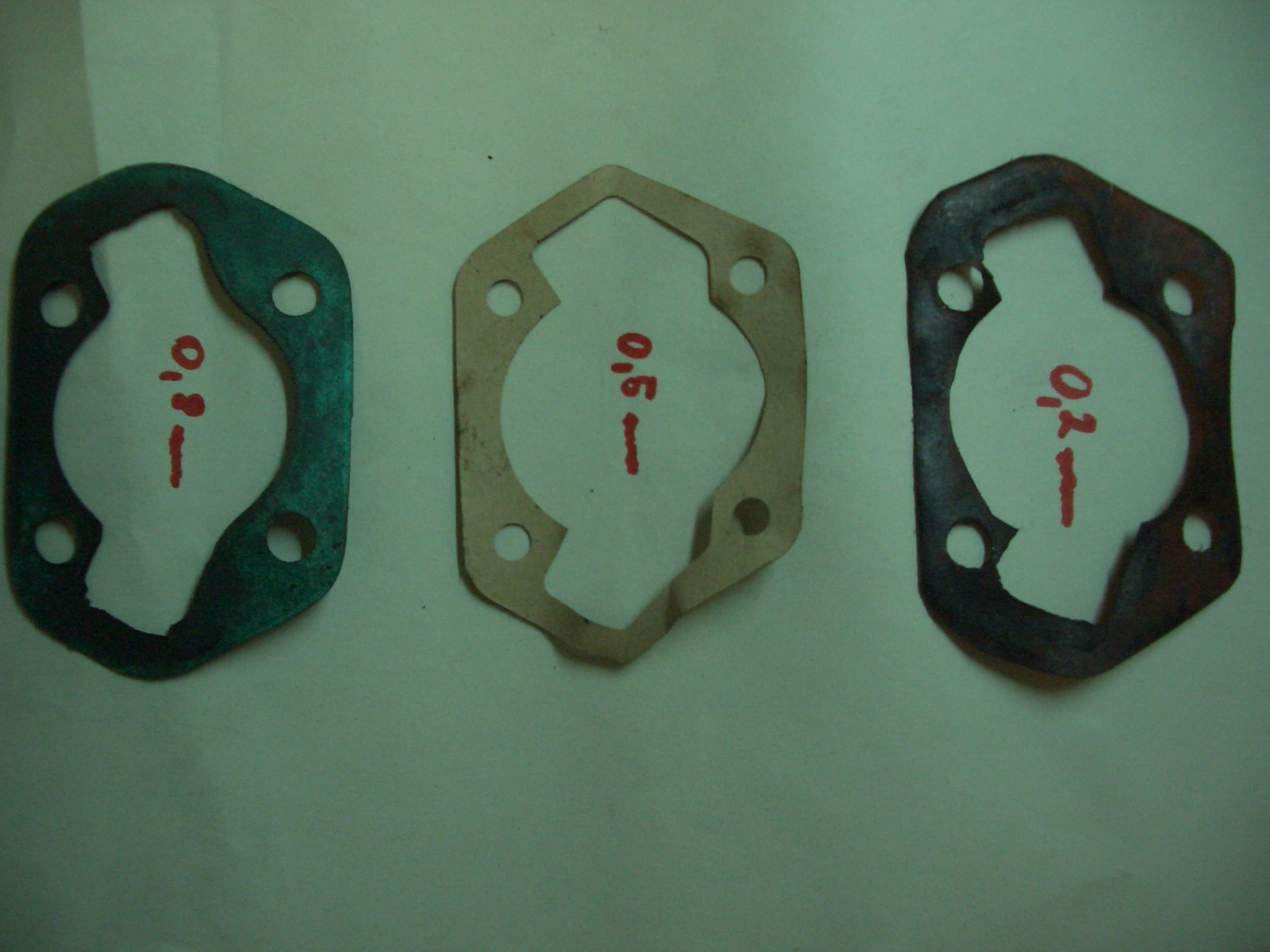 Hallo Nun erstmal die Unterschiede von der Form her: die Kleine, für die eckigen Überströmer der alten Kurzpleuelmotoren die Standard für die runden Überströmer die Große mit den großen runden Überströmern aller KS50-Motoren Es gibt je 3 Dicken 0,2mm 0,5mm 0,8mm Die Dichtungen können je nach Fertigungstoleranz eingebaut werden, um die richtigen Steuerzeiten zu erreichen. hab mal ein Foto gemacht. Mfg Martl